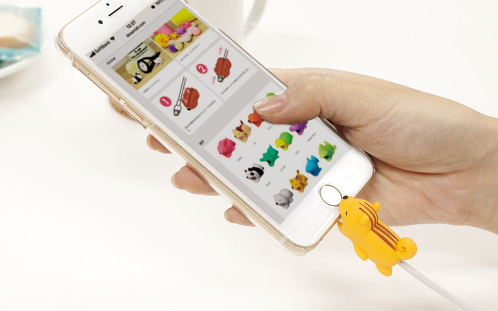 CABLE BITE animals attach to your charging cable and appear to be biting onto your smartphone.